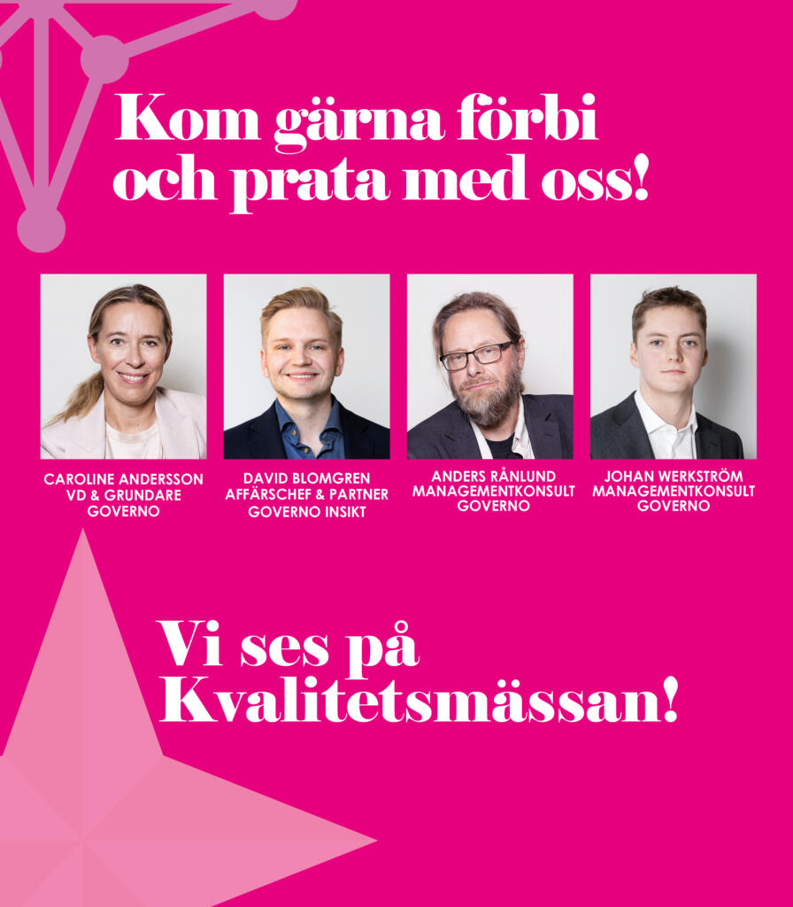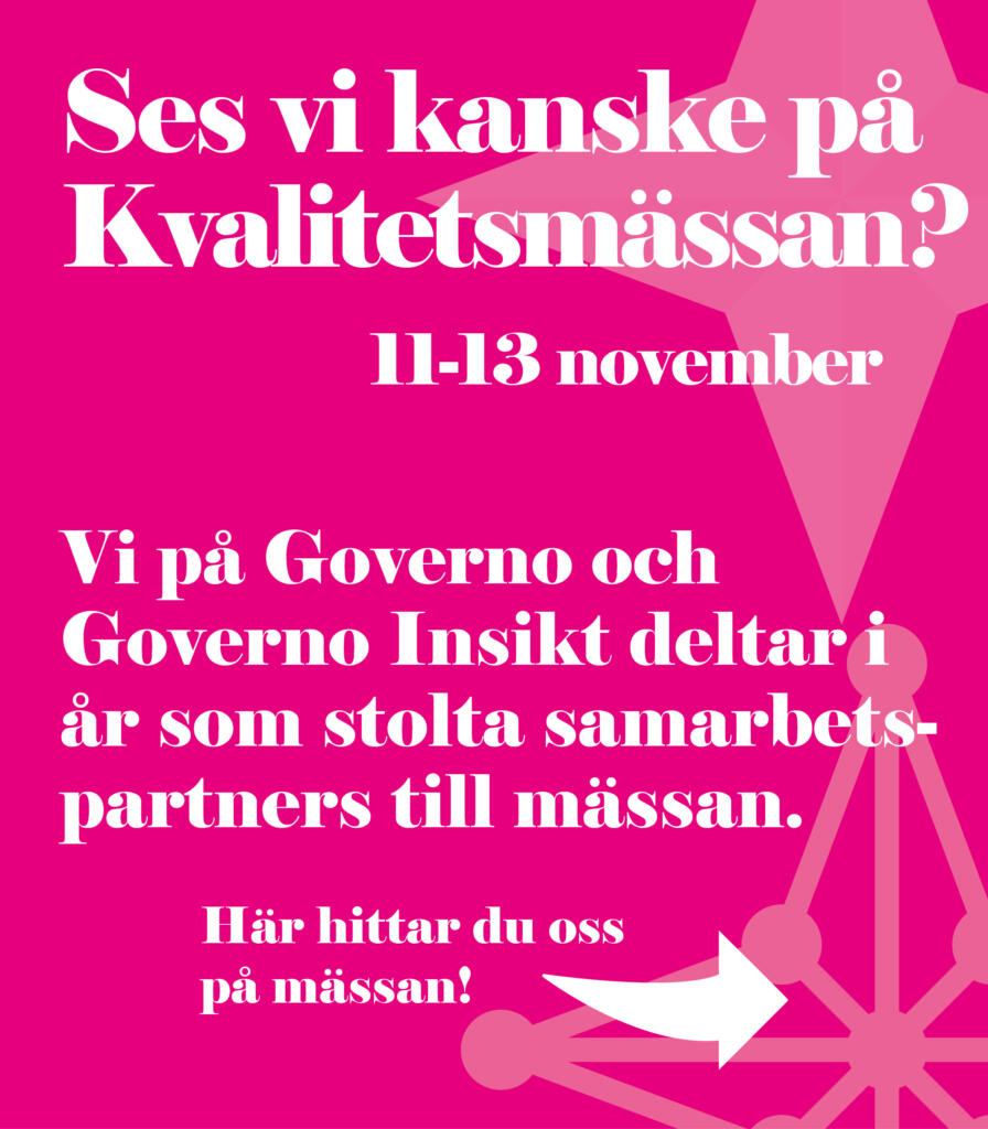 Den 11–13 november är vi på Governo Insikt och Governo på plats som stolta samarbetspartners till Kvalitetsmässan – en mötesplats för alla som vill utveckla styrning, ledning och innovation i offentlig sektor.